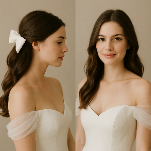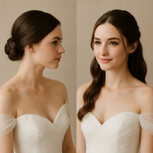 드레스 실루엣에 맞는 헤어스타일을 선택하면 전체적인 분위기가 더욱 완성도 있게 연출돼요.