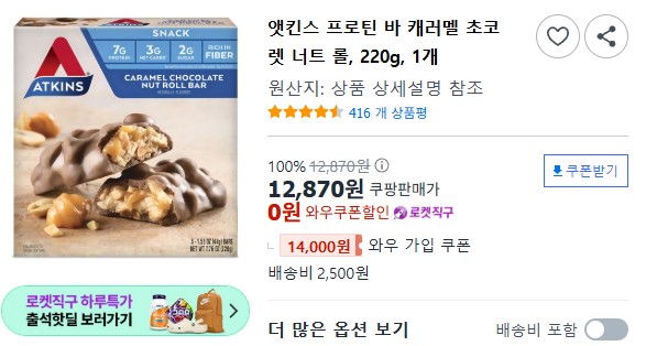 2. 옛킨스 프로틴 바 캐러멜초콜릿 너트 롤